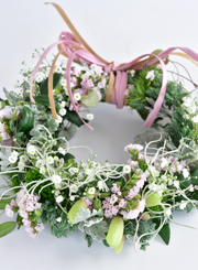 初夏の爽やかな雰囲気にぴったりのリースを作ります。他、ドライになる花材も使って、長く飾って楽しめます。