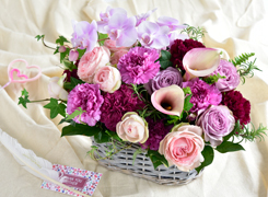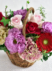 大人っぽく落ち着いた色合いでまとめたアレンジメント。