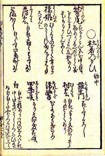 (写真上・上段) 杜若(かきつばた)のるい 初中 鷲の尾(わしのお) 花るりこん色花中に白き 筋ありしべのごとくなり ほど三枚づつ上へ立つ物なり これもるりこん也 橋姫(はしひめ) 村雲(むらくも)のごとくにてるり のさらさ成るほど見事 大輪也 薄雲(うすくも) 白花に村村(むらむら)とかうり有 ごまほし 白にうす紫のほし有 (写真上・下段) 羅生門(らしょうもん) 花うすくろし 村雲(むらくも) 白花にるり色のほし さら さのごとくあり 濡鷺(ぬれさぎ) 花水あさぎいろ 四季咲(しきざき) るり色四度花咲 白 白に二種あり つねの白は花 中に紫のさしうつろひ有 ぬけ白といふはうつろひもなし 上々 |