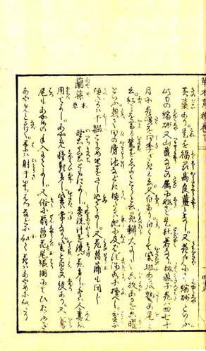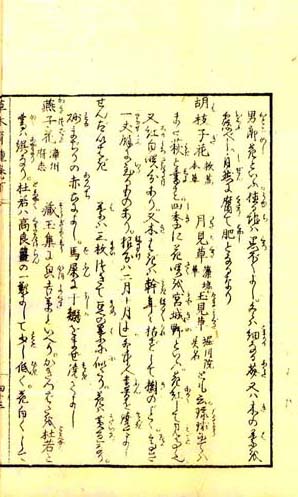 | 注釈: | 燕子花 ○州府志 蔵玉集に皃吉草(かほよぐさ)といへり かきつ ばたを 杜若と書くは誤りなり。杜若は高良薑(くまたけらん)の一類 にして少し 低く。花白くして黄蘂(きのしべ)あり。是を福州高良薑と なし。又花戸にて 縮砂(しゅくしゃ)といふ。此もの縮砂又山薑など の属(たぐい)に非(あら)ず 是杜若なり。さて燕子花は四七十月に 花咲を四季ざきと云。又白あり。 白くして紫斑あるを鷲の尾と云。 紅(あか)みを帯びる紫をしょくこう(蜀紅) と云。花弁大にして六枚 あるを六曜といふ。惣(すべ)て田の傍(かたわら) 池などに植えた るは肥に及ばず浅水に植えるべし。盆(はち)に植えたるは 干鰛 (ほしか)ごまめ等をさし込てよし。花菖蒲も同じ。 |